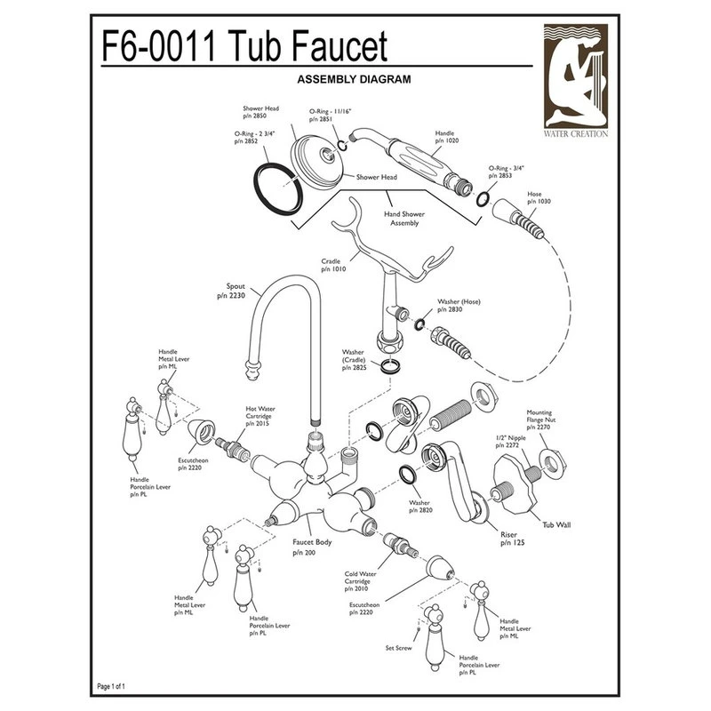 Water Creation’s collection of premier vintage clawfoot bathtub fillers will transform any bathroom’s decor to the luxury and elegance of yesteryear. The crossroads of timeless design and an innovative modern manufacturing processes merge harmoniously to ensure each filler’s finishes and function are as reliable as their unmistakable beauty. Made of 100% brass and adorned with a porcelain shower handle, the heavy weight of Water Creation’s clawfoot bathtub fillers lends credence to the durability and superior craftsmanship that Water Creation is known for. With the understanding that no one customer is alike, Water Creation has gone the extra mile to ensure satisfaction by giving customers the power to customize the handle style of their clawfoot bathtub fillers. Simply select the style that meets your preferences and start enjoying a world-class tub filler that you had a hand in creating.