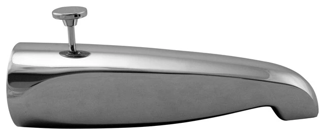 This heavy duty, solid brass, extended reach, tub spout uses a 1/2″ or 3/4″ rear spout inlet for easy mounting. The rear mounted diverter transfers water from the bath to the shower head. The extra long reach reduces water splash on tubs with wide decking. Diverter tub spout. 8-1/2″ reach. Rear threads. Fits 1/2″ IPS or 3/4″ IPS with brass bushing. Brass construction.
