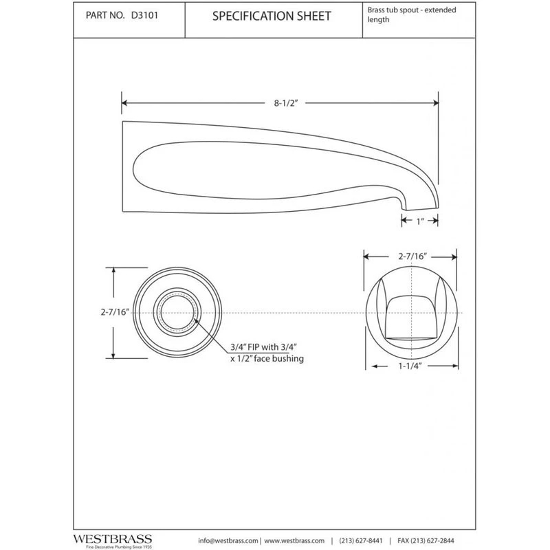 Be the first to review “Westbrass Standard 8.5″ Tub Spout In Satin Nickel” Cancel reply